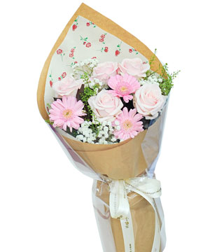 Bó hoa tươi được thiết kế theo phong cách nhẹ nhàng, đơn giản nhưng vẫn nổi bật và đẹp mắt. Các loại hoa thường được sử dụng là những hoa tươi thông dụng, có giá thành phải chăng nhưng màu sắc tươi tắn và dễ phối hợp như: